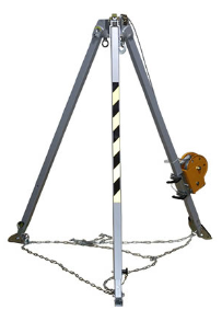 在将三脚架安置于孔、洞上方前,需特别注意地面状况。若在平坦坚硬地面,可直接进行后续操作;若地面松软或处于斜坡等复杂地形,则要采取额外措施。如在松软地面,可在三脚架支脚底部垫上厚实木板,增大受力面积,分散压力;在斜坡处,依据斜坡角度调节各支脚长度,使较低一边支撑于斜坡高处,较高一边支撑于低处,以此找到平衡,再由救援人员辅助把持,确保稳定。